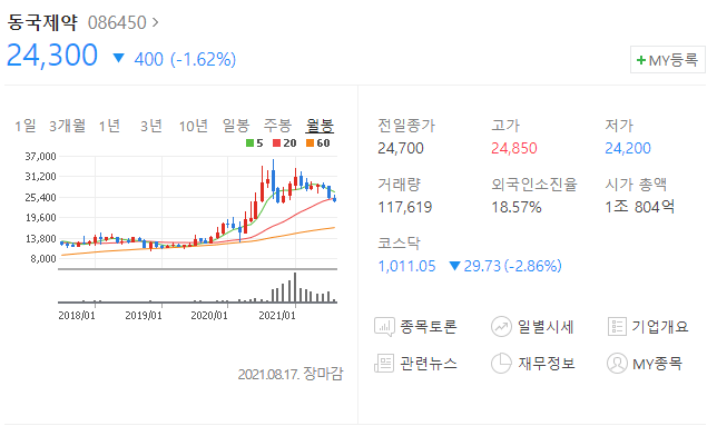 이번 토픽을 동국제약으로 잡아봤습니다.