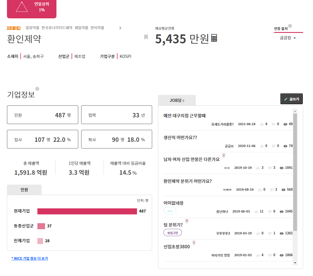 평균연봉도 제약업계에서 높은 편인 것 같네요.