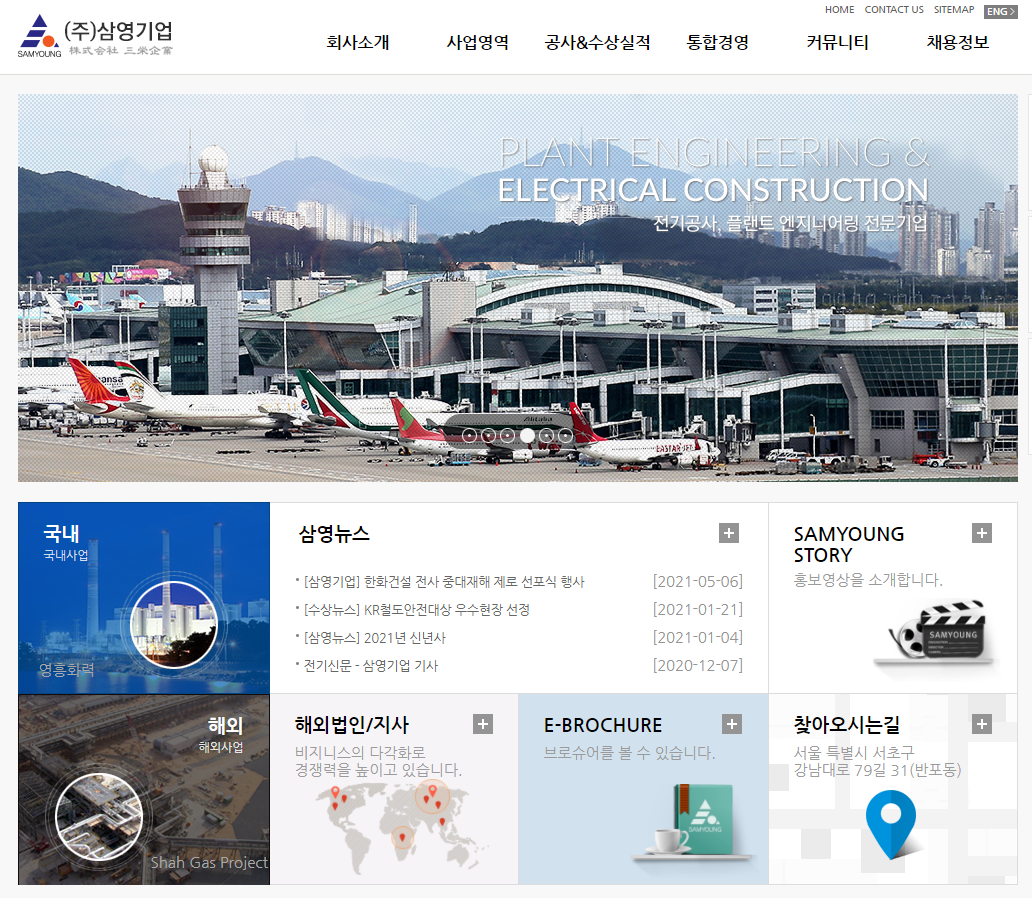 1994년 전기공사 전문 기업으로 그 시작을 알린 ㈜삼영기업은 경제발전의원동력인 전기공사 중 발전, 송변전, 석유화학, 신재생에너지, 반도체 부분의선두주자로 자리매김하며 국내는 물론 해외 현장으로그 영역을 확대해 나가고 있습니다.
