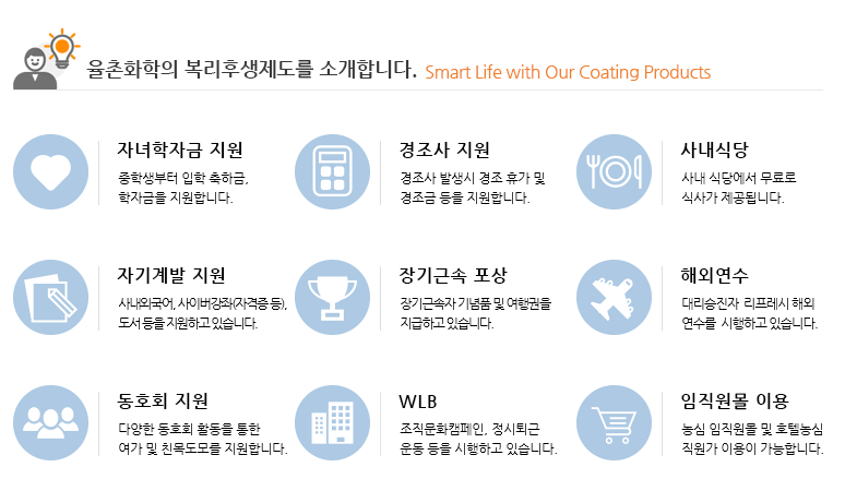 율촌화학의 복지는 홈페이지에 있는 그림을 가져와봤는데요.