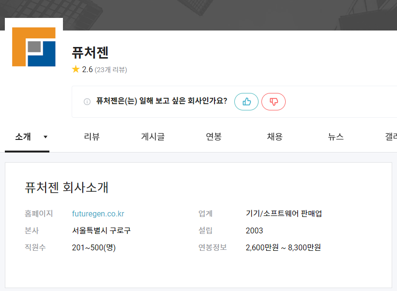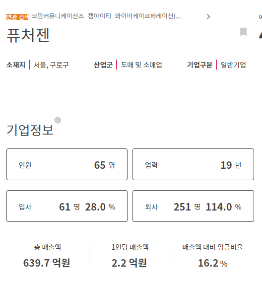 일단 글 마무리 전에 퓨처젠 복지나 회사 정보 정리해볼게요.