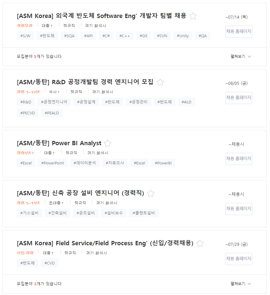 다만 장비공정 엔지니어는 석사까지도 뽑는다는게 좀 다르네요,