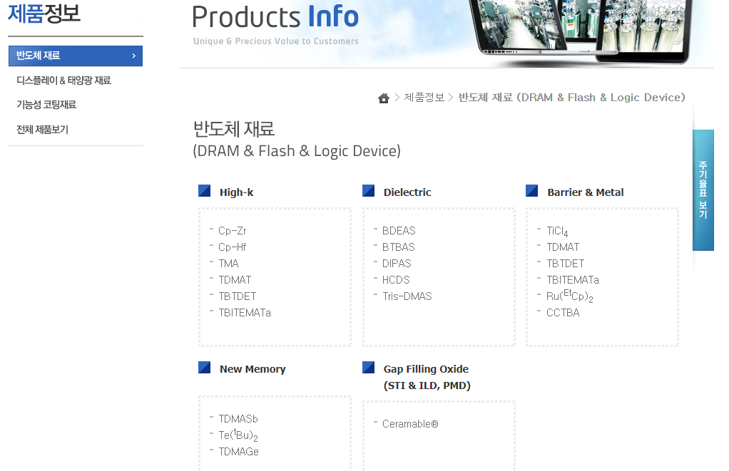 제품정보는 보니까 전반적으로 전자소재로 보시면됩니다.