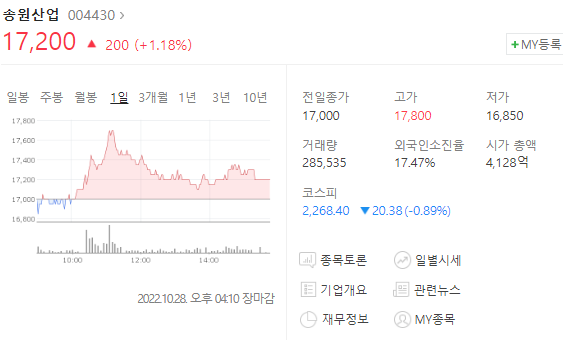 송원산업 괜찮은데요?돈만 좀 주면 좋은데..?