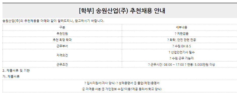 송원산업은 주변대학교에 추천채용을 많이받나보네요.