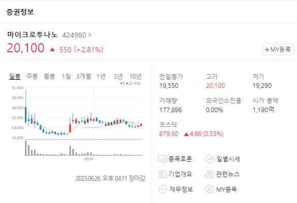 이전이름은 엠투엔 . 지금은 상장하면서 마이크로투나노 로 사명을 바꿨군요