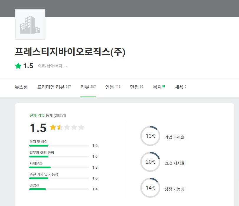 https://www.jobplanet.co.kr/companies/353761/reviews/%ED%94%84%EB%A0%88%EC%8A%A4%ED%8B%B0%EC%A7%80%EB%B0%94%EC%9D%B4%EC%98%A4%EB%A1%9C%EC%A7%81%EC%8A%A4