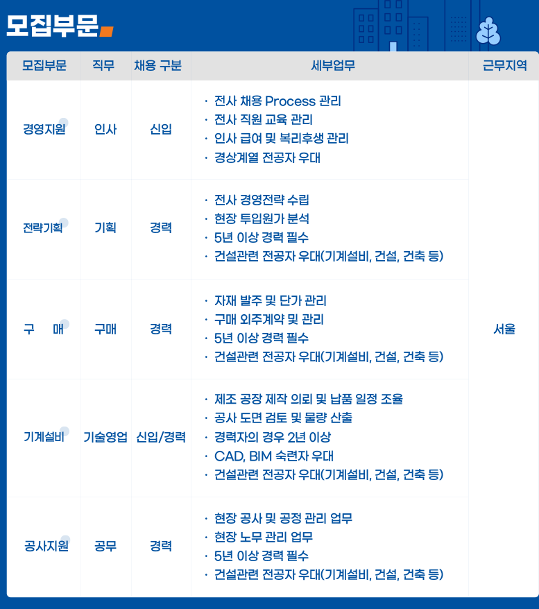건설업이라서 직무가 fit하신분이 얼마나 계실지는 모르겠는데