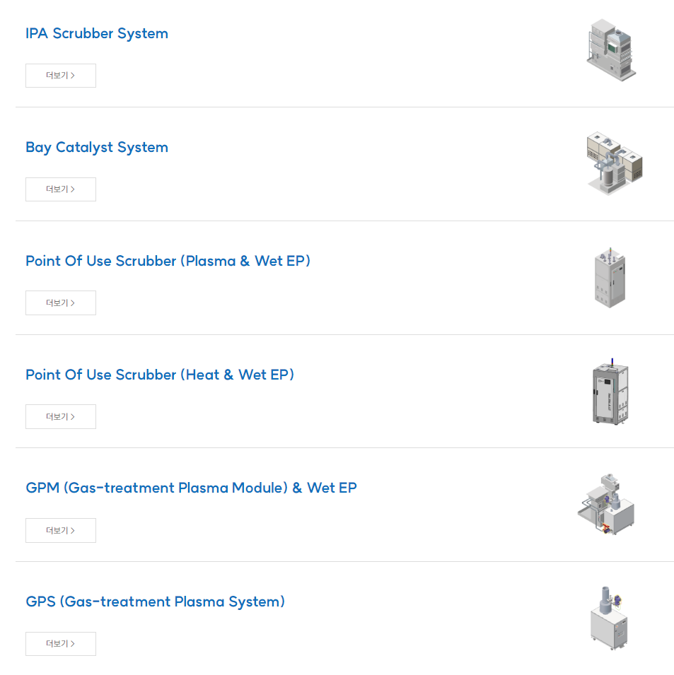 2010.04.01 개업후 환경설비를 제작 및 시공하는 기업으로 대표적인 제품으로는 NOx, Dust, HF 등 복합 오염물질 처리 하는 De-Nox System 및 반도체 공정 기존 ALK 스크러버에서 배출되는 NH3 Gas 처리 시스템등 반도체 후저리 장비에 다양하게 적용할 수 있는 핵심기술 또한 여러 보유하고 있으며, 기타 반도체 산업외에 케미컬, 발전소 등 광범위하게 적용할 수 있는 기술을 보유하고 있습니다.