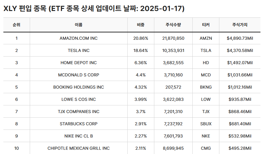XLY를 보니까 아마존, 테슬라, 치폴레정도가 눈에 띄는것같고
