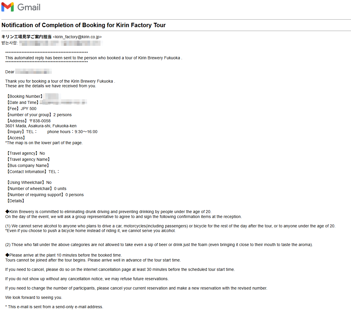 후쿠오카에는 일단 기린 맥주공장만 있다고 보시면 될 것 같습니다.