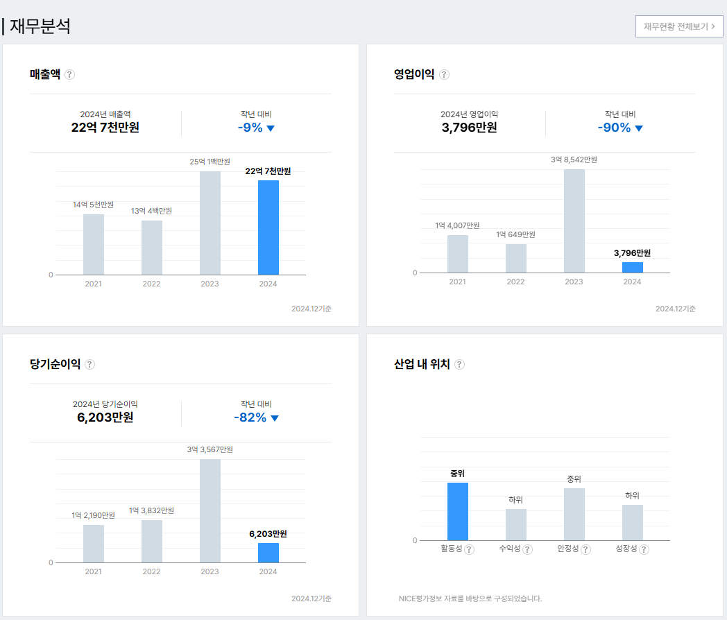 기업규모나 영업이익은 아직 크지않은 회사인 것 같습니다.