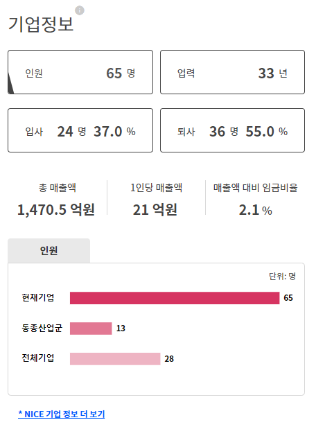 기업의 모든 정보를 한 눈에. 사원수, 평균연봉, 이직률, 매출액, 주요제품 및 사업구성까지