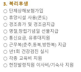 단체 보험이나 경조금은 기본적으로 갖춰져있네요.