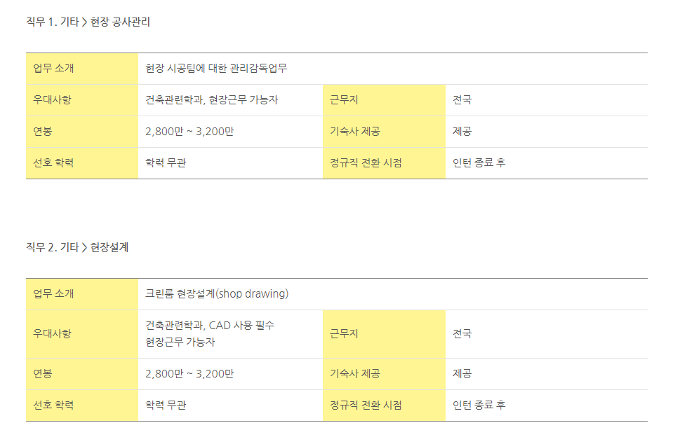 다만 다른 건설업종 직무가 없다면 이곳에 지원해야겠죠?