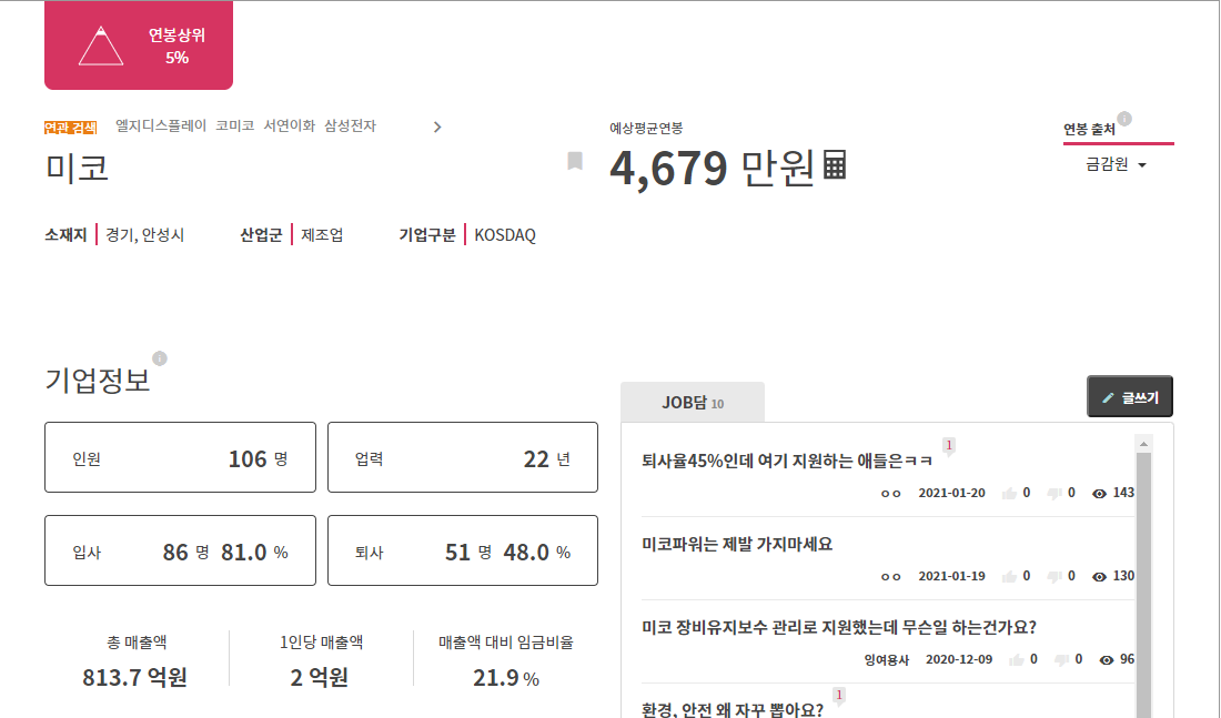 경험상 연봉이 낮은 기업은 복지 또한 그만큼 낮습니다.