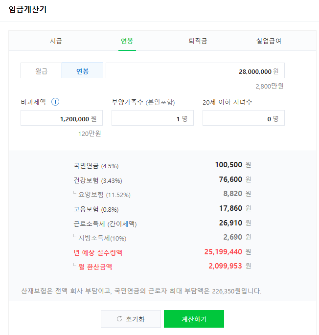 네이버 연봉계산기 기준으로 월 210이에요.